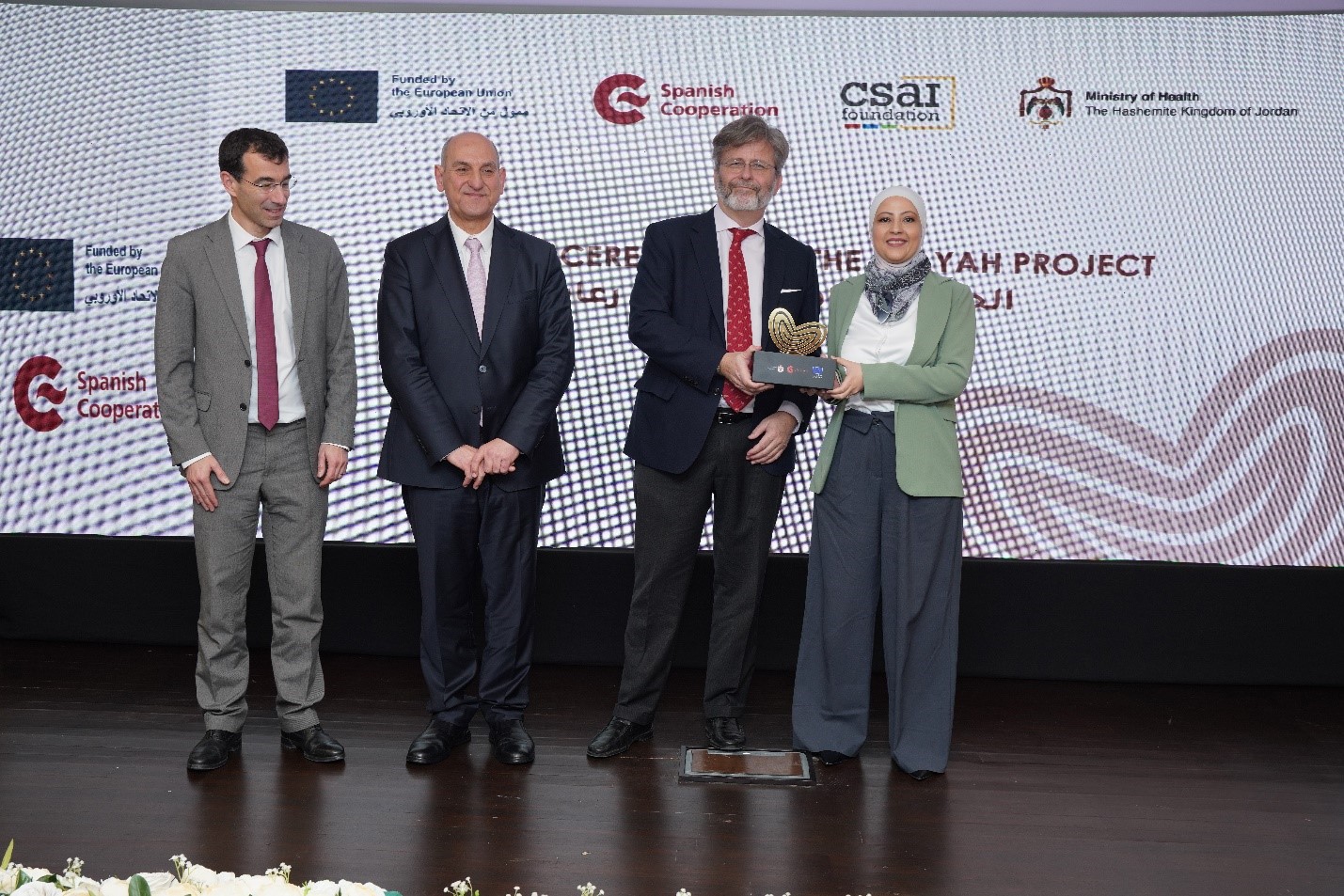 La ceremonia de clausura del Proyecto REAYAH, celebrada en marzo bajo el patrocinio del ministro de Salud, Dr. Firas Al-Hawari, y con la presencia del Embajador de la Unión Europea en Jordania, D. Pierre-Christophe Chatzisavas, y del Embajador de España en Jordania, D. Miguel de Lucas, enfatizó los resultados obtenidos y dio voz a participantes y beneficiarios finales de esta intervención.